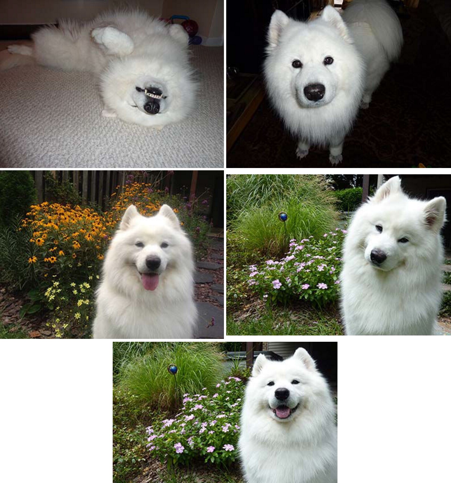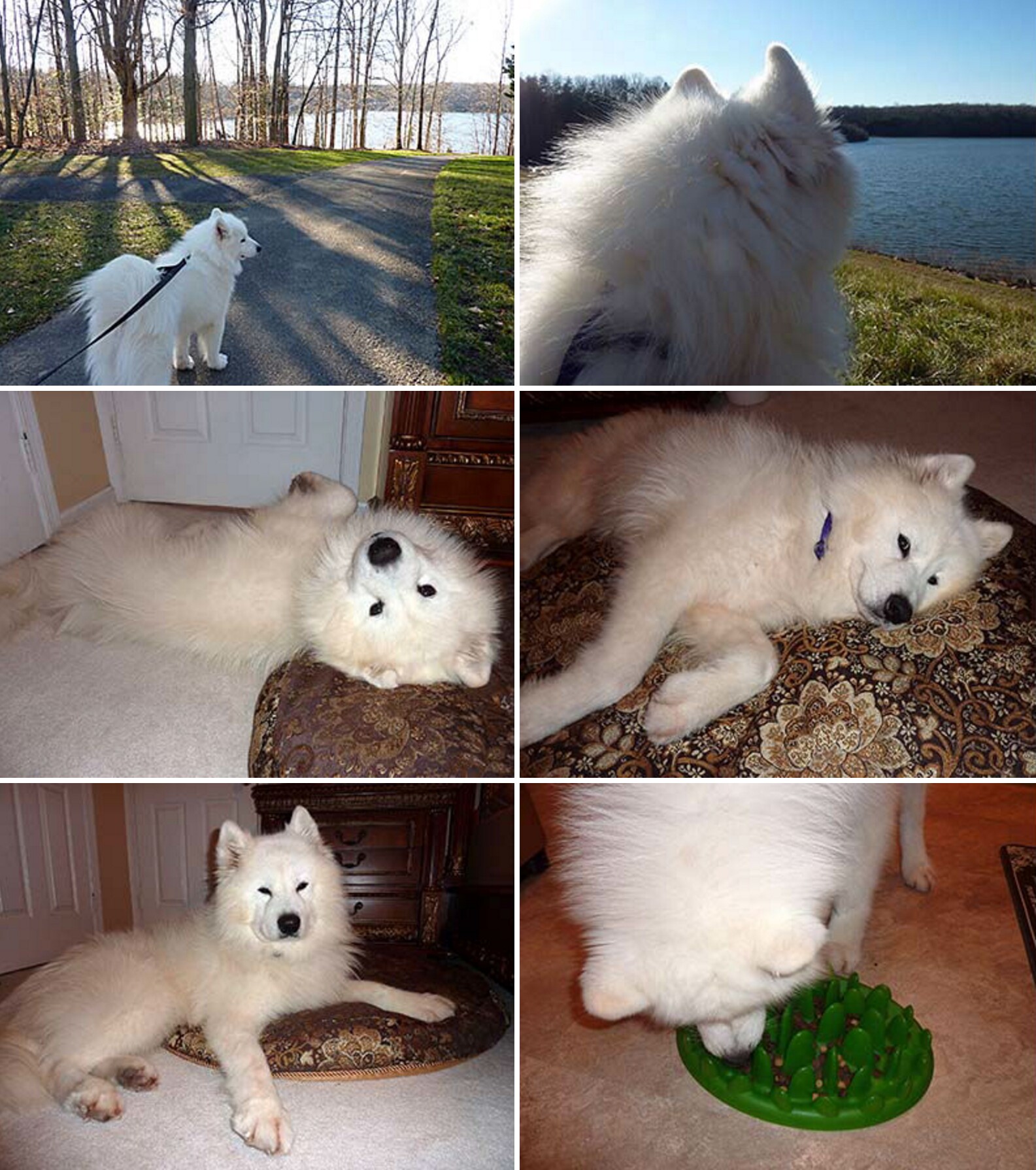 * Yes, that’s a Samoyed with poodle paws!! It’s worth mentioning that although Bunky appeared completely “healthy” when I adopted him, some routine blood/urine tests and some keen intuition on my part revealed that he actually had numerous mild bacterial infections, including a skin infection in between the toes of one of his paws, a UTI, an inner ear infection, and an eye infection. They were all cleared up with antibiotics, but the skin infection between his toes has reoccurred on different paws two times already, so I find that keeping the “poodle paws” is the best way of identifying a new infection and keeping the area clean.