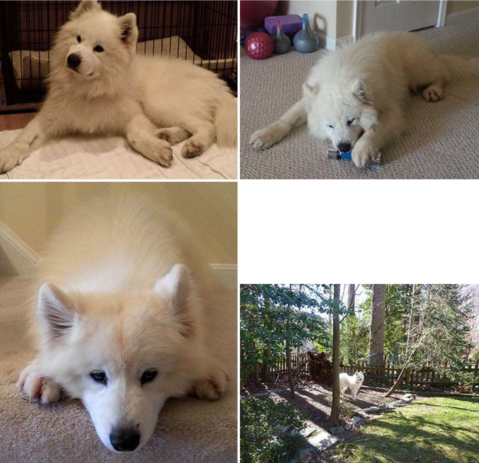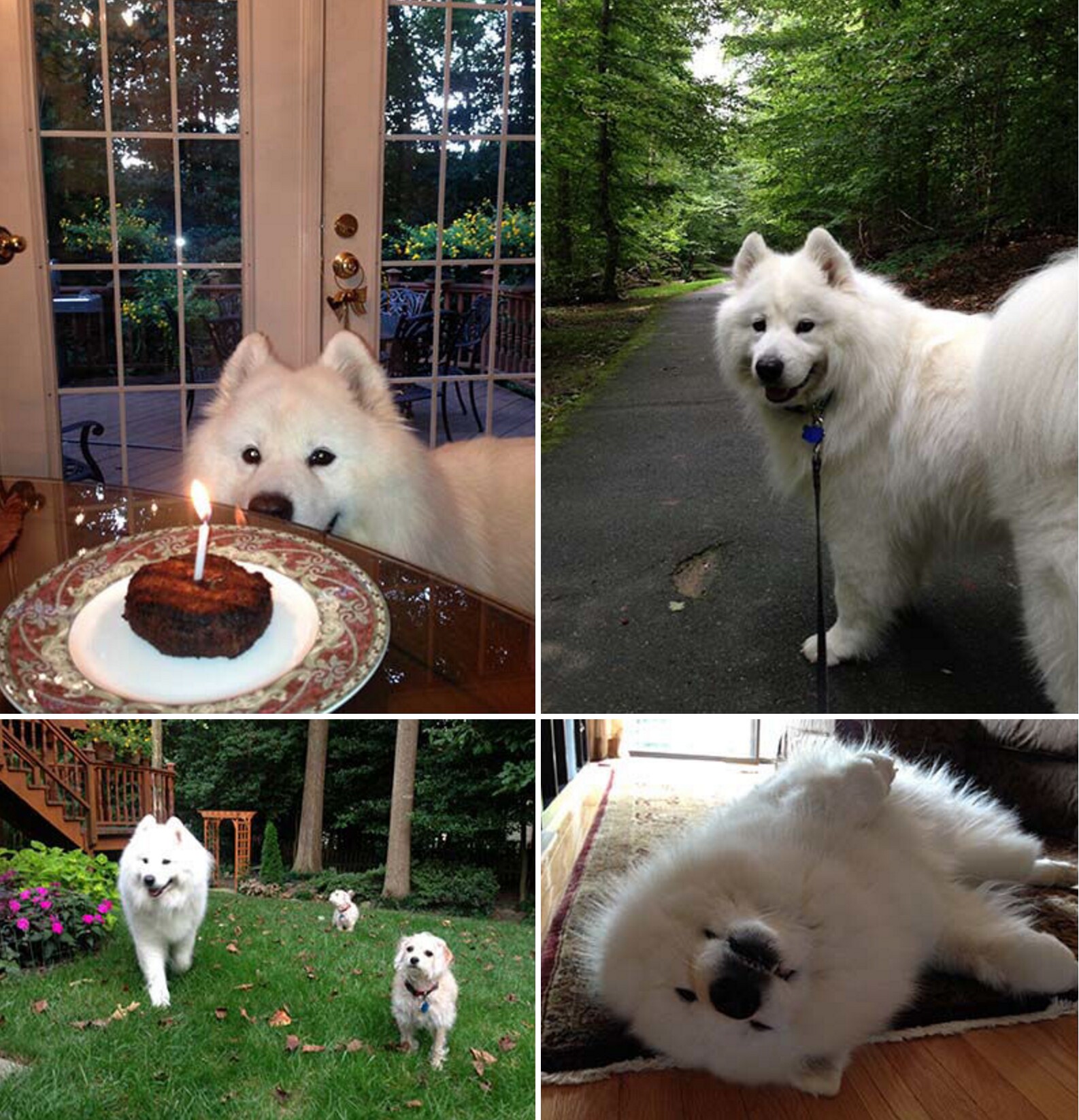 * Yes, that’s a Samoyed with poodle paws!! It’s worth mentioning that although Bunky appeared completely “healthy” when I adopted him, some routine blood/urine tests and some keen intuition on my part revealed that he actually had numerous mild bacterial infections, including a skin infection in between the toes of one of his paws, a UTI, an inner ear infection, and an eye infection. They were all cleared up with antibiotics, but the skin infection between his toes has reoccurred on different paws two times already, so I find that keeping the “poodle paws” is the best way of identifying a new infection and keeping the area clean.
